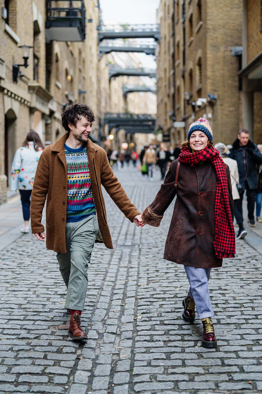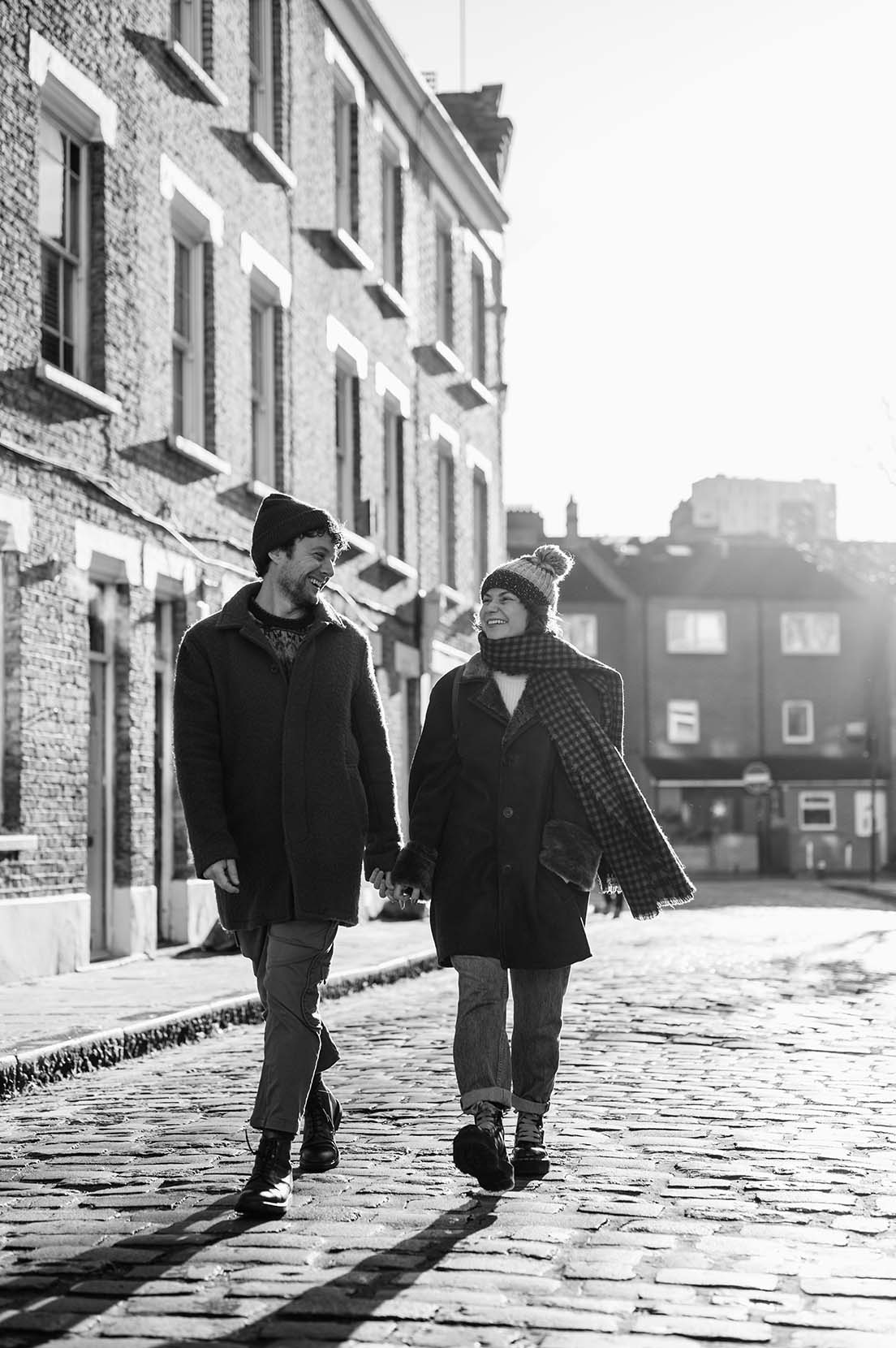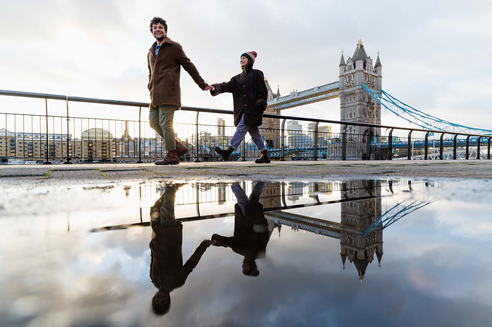 Pasamos un fin de semana recorriendo algunos de sus lugares favoritos de la ciudad, aquellos que tienen un significado especial para ellos y que forman parte de su historia. Desde el imponente Tower Bridge, donde la arquitectura se mezcla con el bullicio de la ciudad, hasta la esencia urbana del túnel de grafiti, un lugar vibrante lleno de color y energía. También paseamos por Shad Thames, con sus calles adoquinadas y sus puentes elevados, un rincón con un aire cinematográfico que encajaba perfectamente con su estilo.