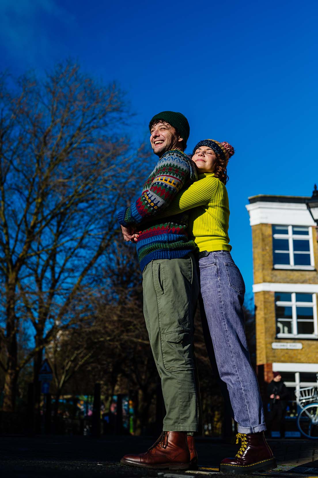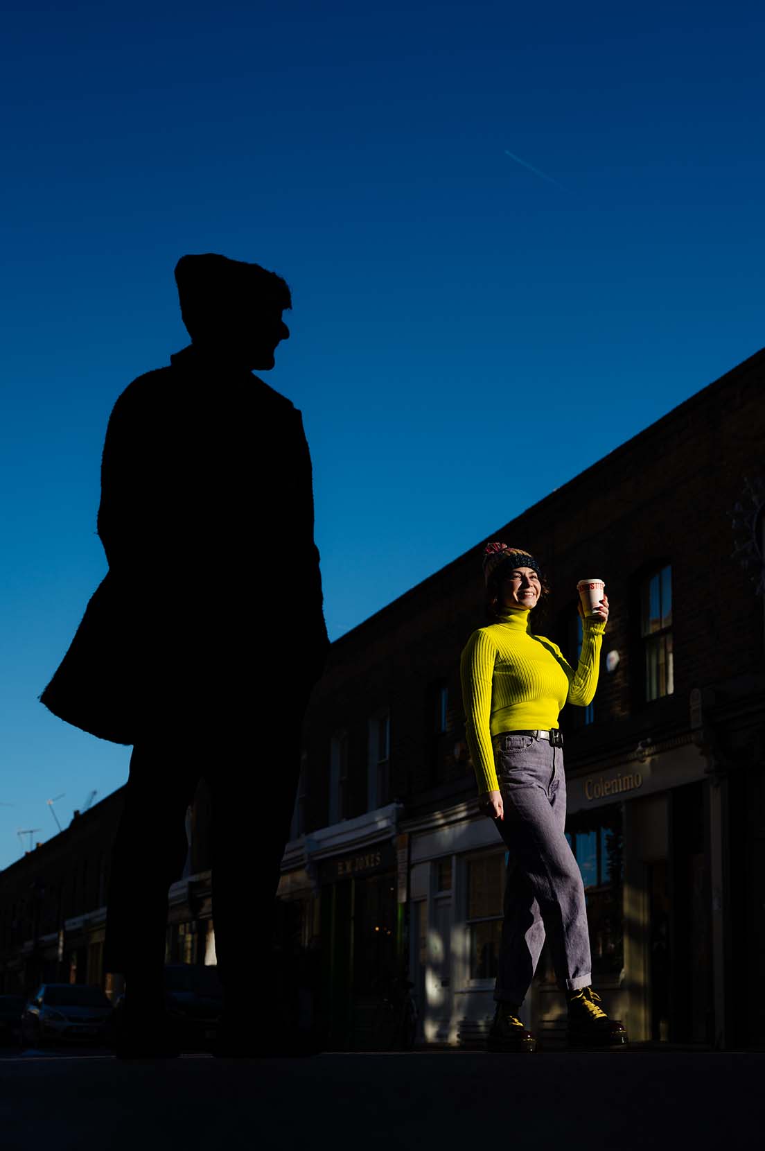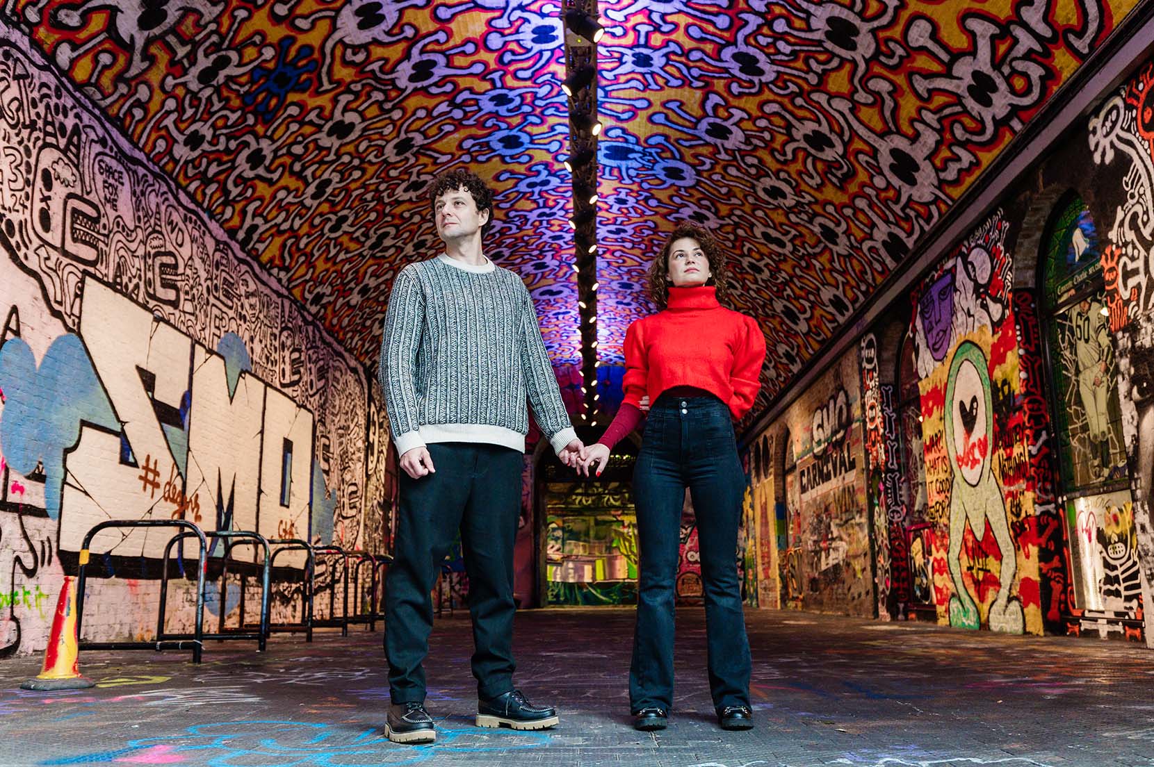 Pasamos un fin de semana recorriendo algunos de sus lugares favoritos de la ciudad, aquellos que tienen un significado especial para ellos y que forman parte de su historia. Desde el imponente Tower Bridge, donde la arquitectura se mezcla con el bullicio de la ciudad, hasta la esencia urbana del túnel de grafiti, un lugar vibrante lleno de color y energía. También paseamos por Shad Thames, con sus calles adoquinadas y sus puentes elevados, un rincón con un aire cinematográfico que encajaba perfectamente con su estilo.